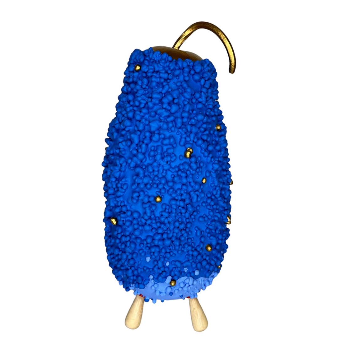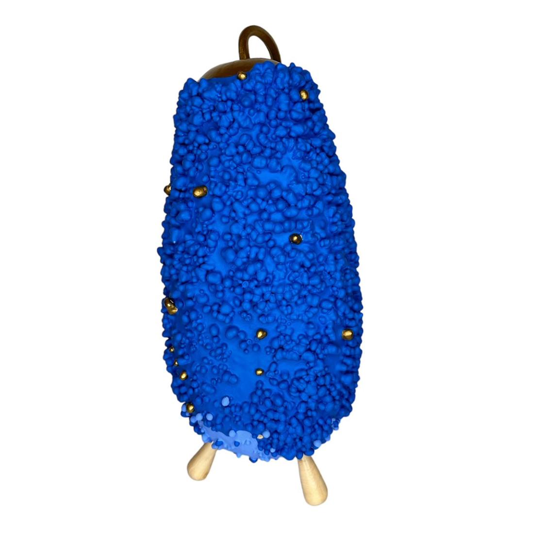 Coloquinte peinte (gourde lagénaria sèche). 3 pieds tournés en bois. Hauteur totale 36 cm. Pièce unique.