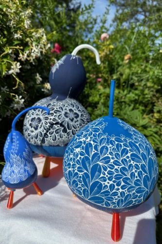 Les formes organiques des coloquintes et les dessins originaux qui les habillent font de chacune de mes créations une œuvre unique.